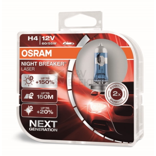 Buďte bez obav při provozu na běžných cestách s autožárovkou německé kvality OSRAM H4 Night Breaker Laser Next Generation. Disponuje novým precizním tvarem „okna“ v provrstvení, které vlivem laserové ablace zajistí maximální výkon žárovky a lepší distribuci světla. Teplá barevnost světla žárovky H4 o chromatičnosti 3750 K nenamáhá zrak ani při snížené viditelnosti. Vysoký tlak vzácného plnícího plynu zajištuje vyšší výkon. Žárovce H4 zároveň nechybí elegance a jedinečnost i co se týče vzhledu, který dekoruje stříbrný vrchlík a gravírování. Výkon žárovky činí 55 W a napětí 12 V. Životnost dosahuje až 250 hodin. Set obsahuje 2 ks autožárovky H4. Podívejte se na další autožárovky H4 a autožárovky H7. Podívejte se na další halogenové autožárovky v našem sortimentu. Vybírat můžete i z úspornějších LED žárovek do aut, xenonových výbojek, i klasických autožárovek. O firmě OSRAM Ekvivalentem německé kvality je společnost OSRAM s úctyhodnou tradicí sahající až do roku 1906. Její specialitou jsou světelné zdroje, ať už vybíráte LED žárovky, trubice nebo halogenové či zářivkové zdroje, ale i autožárovky. Prohlédněte si náš kompletní sortiment firmy Osram.