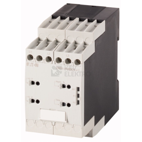 Relé pro kontrolu fází, Sortiment: Měřicí a monitorovací relé EMR, Multifunkční, napájení z měřicího obvodu, Zpoždění: žádné = 0 nebo nastavitelné 0,1 až 30 s, Nastavitelné mezní hodnoty a asymetrie 2 - 25 % od střední hodnoty fázových napětí, Třífázové sítě, Automatická korekce sledu fází (lze deaktivovat), Monitoring voltage per phase: UN= 530 - 820 V AC, 50/60 Hz V AC, Monitoring of: Phase sequence (can be deactivated), Phase failure, Overvoltage, Undervoltage, Imbalance, Phase sequence, Supply voltage: 530 - 820 V AC, 50/60 Hz, Poloha při montáži: libovolná, Upevnění: Západkové upevnění na montážní lištu IEC/ČSN EN 60715, Šířka: 45 mm, Normy a ustanovení: IEC, UL, CSA, CCC, GL