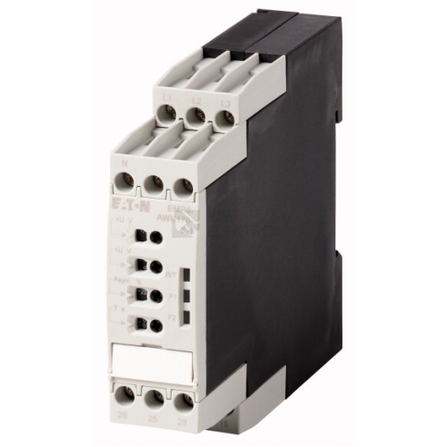 Relé pro kontrolu fází, Sortiment: Měřicí a monitorovací relé EMR, Multifunkční, napájení z měřicího obvodu, Zpoždění: žádné = 0 nebo nastavitelné 0,1 až 30 s, Nastavitelné mezní hodnoty a asymetrie 2 - 25 % od střední hodnoty fázových napětí, Automatická korekce sledu fází (lze deaktivovat), Vhodné také pro jednofázové sítě., Monitoring voltage per phase: UN= 90 - 170 V AC, 50/60 Hz V AC, Monitoring of: Phase sequence (can be deactivated), Phase failure, Overvoltage, Undervoltage, Imbalance, Neutral cable break, Supply voltage: 90 - 170 V AC, 50/60 Hz, Poloha při montáži: libovolná, Upevnění: Západkové upevnění na montážní lištu IEC/ČSN EN 60715, Šířka: 22.5 mm, Normy a ustanovení: IEC, UL, CSA, CCC, GL