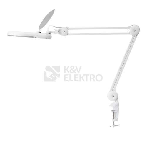 Stolní lupa s osvětlením s uchycením na stůl pomocí šroubovací svorky. Pro osvětlení jsou použity LEDTechnické parametry: Příkon (W): 9 Provedení: bílé Napájecí napětí: 230 V / 50 Hz Rozměry: hlava průměr 20 cm Průměr: čočka 12 cm Délka: rameno 2x 46 cm Dioptrie / zvětšení: 8D / 3x