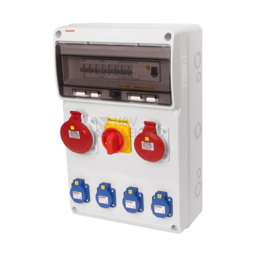 Staveništní rozváděč FAMATEL v6252-ZSFV40101000.1 /3952 IP44 jištěný s chráničem 40/4/003 a hl. vypínačem 40A určený pro montáž na omítku/zeď/povrch, zásuvky 4x230V, 1x16/5, 1x32/5, přístroje EATON 10kA: 2xPL7-B16/1, 1xPL7-B16/3, 1xPL7-B32/3, PF7-40/4/003 na vstupu, použité pouzdro: 3952 - 500x330x150mm.Staveništní rozváděč (podružný rozváděč nízkého napětí) v6252-ZSFV40101000.1 /3952 IP44 jištěný s chráničem 40/4/003 a hl. vypínačem 40A určený pro montáž na omítku/zeď/povrch, zásuvky 4x230V/16A (s ochranným kolíkem dle ČSN), 1x400V/16A/5pól, 1x400V/32A/5pól, jistící přístroje EATON 10kA: 2xPL7-B16/1, 1xPL7-B16/3, 1xPL7-B32/3, PF7-40/4/003 na vstupu (citlivost na reziduální proud 30mA), připojovací svorkovnice do max. 5x25 mm2, použité pouzdro: 3952 - celkem k dispozici 16mod. míst, rozměry: 500x330x150mm, plastová, materiál ABS, IK08, zkouška žhavou smyčkou 650°C, bezhalogenová a UV odolná, způsob instalace: mobilní, barva: světle šedá, rozsah teplot -25°C +85°C, aplikované normy: IEC 61439-4 (Rozváděče nízkého napětí - Část 4: Zvláštní požadavky pro staveništní rozváděče (ACS), balení: 1ks, zásuvky na 230V/16A s ochranným kolíkem dle ČSN, polykarbonátové okénko, jistící prvky EATON, PE svorkovnice součástí (2ks 2x16mm2+4x10mm2), N svorkovnice součástí (2ks 2x16mm2+4x10mm2), stěny s předlisovanými vstupy pro vyvrtání vstupního otvoru a následné osazení příslušnou vývodkou, max. připojitelný vstupní kabel = 4x25 nebo 5x16 (Cu), dodáno s průvodní dokumentací: štítkem rozváděče, návodem pro obsluhu a montáž, krycím listem (charakteristiky rozhraní), protokolem o kusové zkoušce, EU prohlášením o shodě, schématem zapojení a zkouškou oteplení pro rozváděče nízkého napětí.