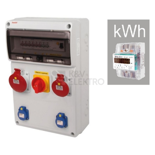 Staveništní rozváděč FAMATEL v440294-ZSFV20101000.1 /3952 IP44 jištěný s chráničem 40/4/003 a hl. vypínačem 40A, elektroměr, určený pro montáž na omítku/zeď/povrch, zásuvky 2x230V, 1x16/5, 1x32/5, přístroje EATON 10kA: 1xPL7-B16/1, 1xPL7-B16/3, 1xPL7-B32/3, PF7-40/4/003 na vstupu, použité pouzdro: 3952 - 500x330x150mm.Staveništní rozváděč (podružný rozváděč nízkého napětí) v440294-ZSFV20101000.1 /3952 IP44 jištěný s chráničem 40/4/003 a hl. vypínačem 40A určený pro montáž na omítku/zeď/povrch, elektroměr DTS 353L, zásuvky 2x230V/16A (s ochranným kolíkem dle ČSN), 1x400V/16A/5pól, 1x400V/32A/5pól, jistící přístroje EATON 10kA: 1xPL7-B16/1, 1xPL7-B16/3, 1xPL7-B32/3, PF7-40/4/003 na vstupu (citlivost na reziduální proud 30mA), připojovací svorkovnice do max. 5x25 mm2, použité pouzdro: 3952 - celkem k dispozici 16mod. míst, rozměry: 500x330x150mm, plastová, materiál ABS, IK08, zkouška žhavou smyčkou 650°C, bezhalogenová a UV odolná, způsob instalace: mobilní, barva: světle šedá, rozsah teplot -25°C +85°C, aplikované normy: IEC 61439-4 (Rozváděče nízkého napětí - Část 4: Zvláštní požadavky pro staveništní rozváděče (ACS), balení: 1ks, zásuvky na 230V/16A s ochranným kolíkem dle ČSN, polykarbonátové okénko, jistící prvky EATON, PE svorkovnice součástí (2ks 2x16mm2+4x10mm2), N svorkovnice součástí (2ks 2x16mm2+4x10mm2), stěny s předlisovanými vstupy pro vyvrtání vstupního otvoru a následné osazení příslušnou vývodkou, max. připojitelný vstupní kabel = 4x25 nebo 5x16 (Cu), dodáno s průvodní dokumentací: štítkem rozváděče, návodem pro obsluhu a montáž, krycím listem (charakteristiky rozhraní), protokolem o kusové zkoušce, EU prohlášením o shodě, schématem zapojení a zkouškou oteplení pro rozváděče nízkého napětí.