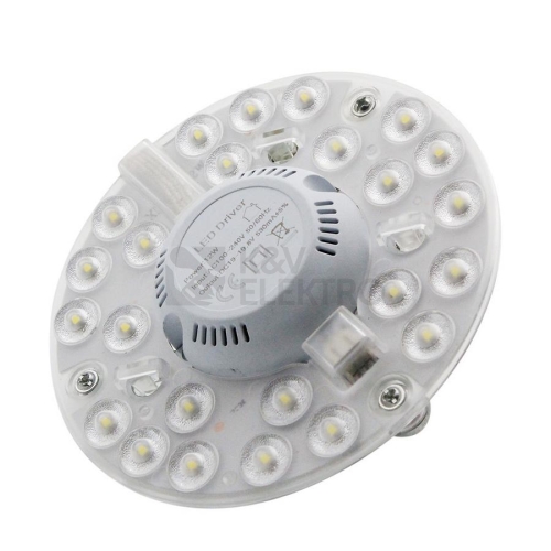 LED modul určený pro přímé osazení do stávajícího svítidla namísto objímky a žárovky či úsporné zářivky. Jednoduchým vyjmutím objímky a snadným zapojením pomocí vodičů na modulu lze svítidlo osadit moderní LED technologií. Modul je osazen extra silnými magnety, které bezproblémově drží na kovové ( ocelové) základně, celá výměna se tak obejde bez vrtání a šroubování. Výhodami osazení LED modulu je možnost ponechat stávající svítidlo, velmi nízká spotřeba, dlouhá životnost, neomezený počet sepnutí a oproti úsporným zářivkám i okamžitý náběh na plný jas.Technické parametry: Příkon (W): 12 Světelný tok (lm): 1200 Barevná teplota: 4200 K Typ LED čipu: 2835 Výrobce LED čipu: Epistar Životnost LED: 40 000 h Index podání barev: Ra > 80 Stmívání: Ne Krytí: IP20 Pracovní teplota: -25 °C až + 50 °C Napájecí napětí: 230 V / 50 Hz Detekce pohybu: Ne Rozměry: 125 mm Třída ochrany: II V souladu s: CE, F
