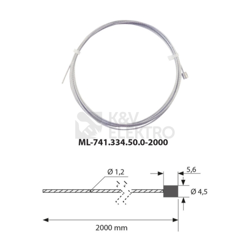 Závěsné ocelové lanko, zakončené válečkem 4,5x5,5mm, délka 1,2x2000mm