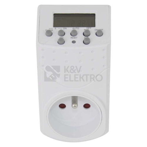 Pomocí programovatelného digitálního časového spínače (dále jen "spínač") lze předem nastavit určitý čas zapnutí či vypnutí (on/off) vašich domácích spotřebičů. Je ideální pro úsporu energie a bezpečnost ve vaší domácnosti. Funkce odpočítávání umožňuje zapnutí či vypnutí spotřebiče v předem nastaveném čase a funkce náhodného zapnutí/vypnutí (random) vám umožňuje zapínat či vypínat spotřebiče v nepravidelných časech, takže je ideální nejen pro některé automatické funkce ve vaší domácnosti, ale také vás chrání před vloupáním během vaší nepřítomnosti. LCD displej ukazuje stav nastavení programu a reálný čas. Maximální počet programů pro vypnutí/zapnutí je 140 za týden. Funkce odpočítávání "countdown". Funkce změny letního času na zimní čas pomocí stisknutí kombinací tlačítek. 140 spínacích možností zapnutí/vypnutí za týden. 20 spínacích možností zapnutí/vypnutí za den. Malý rozměr. Tato digitální spínací zásuvka, nebo-li časovač, je ideální pro nastavení zapnutí a vypnutí jakýchkoliv elektrických spotřebičů. Je spolehlivý i ve Vaší nepřítomnosti.