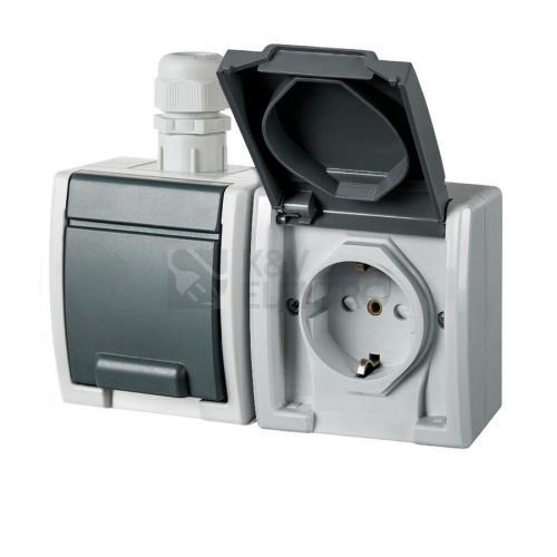 ATLAS 19186 IP65 Zásuvka 2x 2P+PE SCHUKO, 2-násobná vodorovná s vývodkou M20, na povrch, šedáSpínače a zásuvky ve vyšším krytí ATLAS IP65 se šroubovou vývodkou M20 (pro kabely CYKY-J 3x1,5 až 5x2,5) jsou speciálně navrženy do prostředí se zvýšeným výskytem vlhkosti a prachu. Provedení v šedé barvě RAL 7035 a ovládacím prvkem v barvě RAL 7043 a odolnost proti mechanickým nárazům IK07 předurčuje použití ve výrobních provozech, montážních halách, garážích, dílnách apod. Kompaktní a zároveň masivní pouzdro z odolného plastu zaručují dlouhou životnost přístrojů.Popisovací štítek, který je součástí, zajistí přehledné označení každého přístroje, určeno pro nástěnnou montáž (na omítku), UV odolný materiál. Splňuje požadavky norem ČSN EN 60669-1 (spínače) a IEC 60884-1 (zásuvky), pro montáž na hořlavé podklady doporučujeme použití nehořlavé podložky, pro rozsah teplot od -25°C do +70°C.