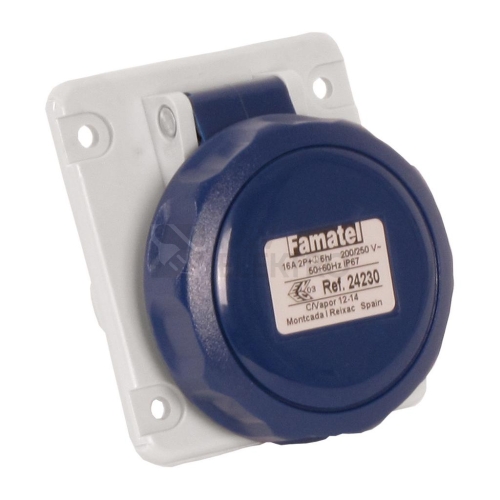 Zásuvka vestavná 24230 IP67/230V/16A/3P 6h, šikmá 10°Průmyslové vidlice, zásuvky a spojky SpeedPRO splňující požadavky norem IEC 60309.Široký sortiment zásuvek a vidlic od 16 A do 125 A byl navržen a vyroben podle nejnáročnějších norem kvality a vyhovuje i těm nejvyšším požadavkům na vodotěsnost, odolnost proti teplotním vlivům a nárazům.Optimální ergonomie - Speciální povrchová úprava zaručuje optimální přilnavost při manipulaci a navíc je zjednodušeno samotné otvírání víčka - vše díky promyšlenému ergonomickému designu.Preciznost - Nerezová bezpečnostní spona chrání vidlici / spojku proti otevření vnitřní části, zároveň zaručuje rychlé otevření a zavření při instalaci kabelu.Šroubová vývodka - Exkluzivní inovovaná kabelová šroubová vývodka s antivibračním systémem uchycení kabelu poskytuje maximální trvanlivost spoje a pohodlnou údržbu.Připojení vodičů - V produktové řadě SpeedPRO jsou všechny šroubky přístupné z jedné strany, není nutné otáčet vidlicí/spojkou během instalace.Snadná montáž - Konstrukce vidlic a spojek umožňuje umístění optimálně dle potřeb instalace díky vestavěným závěsům.Univerzálnost - Konstrukce vidlic a zásuvek je vhodná pro všechny typy aplikací a použití v extrémních podmínkách (vlhkost, prašnost, mastnota,...).