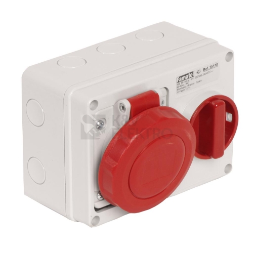 Zásuvka nástěnná blokovaná 25110 IP67/400V/16A/5P 6hPrůmyslové zásuvky SpeedPRO splňující požadavky norem IEC 60309. Jedná se o zásuvky vybavené speciálním vačkovým spínačem 0-1 s funkcí blokády - tzn. že při nepřipojené vidlici nelze otočit spínačem do zapnuté polohy. Zásuvky jsou osazené v plastové krabici, která je určena pro montáž na omítku (na povrch).