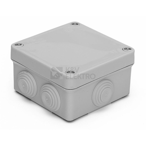 Krabice AcquaBOX 3011 IP55 112x112x64mm, montáž na povrch, plné víko na šrouby, stupňovité vývodky (7x)Plastová krabice AcquaBOX se stupňovitými vývodkami v krytí IP55, rychlá a jednoduchá montáž - plné šedé víko na šrouby, odolnost proti mechanickým nárazům IK08, pro nástěnnou montáž (na omítku), barva šedá (RAL 7035), samozhášivý, bezhalogenní UV odolný materiál (ABS), otvory jsou již předlisovány a osazeny stupňovitými vývodkami, stačí odříznou požadovaný průměr a prostrčit kabel. Splňuje požadavky norem ČSN EN 60670-1, zkouška žhavou smyčkou 650°C (pro montáž na hořlavé podklady doporučujeme použití nehořlavé podložky), pro rozsah teplot od -25°C do +85°C.