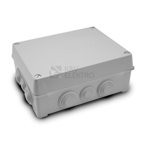 Krabice AcquaBOX 3015 IP55 320x250x135mm, montáž na povrch, plné víko na šrouby, stupňovité vývodky (12x)Plastová krabice AcquaBOX se stupňovitými vývodkami v krytí IP55, rychlá a jednoduchá montáž - plné šedé víko na šrouby, odolnost proti mechanickým nárazům IK08, pro nástěnnou montáž (na omítku), barva šedá (RAL 7035), samozhášivý, bezhalogenní UV odolný materiál (ABS), otvory jsou již předlisovány a osazeny stupňovitými vývodkami, stačí odříznou požadovaný průměr a prostrčit kabel. Splňuje požadavky norem ČSN EN 60670-1, zkouška žhavou smyčkou 650°C (pro montáž na hořlavé podklady doporučujeme použití nehořlavé podložky), pro rozsah teplot od -25°C do +85°C.