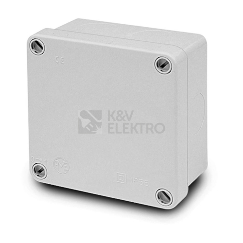 Krabice 3071 IP55 112x112x64mm, plné víko, hladké bokyElektroinstalační krabice s víčkem na plastové šrouby v krytí IP55, rychlá a jednoduchá montáž (šrouby stačit pootočit o 1/4 otáčky), odolnost proti mechanickým nárazům IK07, pro nástěnnou montáž (na omítku), barva šedá, samozhášivý, bezhalogenní UV odolný materiál, bez svorkovnice, otvory do krabice se provádějí vyvrtáním otvoru a následně se osadí vývodka (např. plastová šroubová M16). Splňuje požadavky norem ČSN EN 60670-22, zkouška žhavou smyčkou 650°C (pro montáž na hořlavé podklady doporučujeme použití nehořlavé podložky), pro rozsah teplot od -25°C do +85°C.