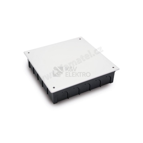 Krabice AcquaBOX 3205-T IP30 255x255x65mm, víčko 270x270, montáž pod omítku, plné víko na šrouby.Elektroinstalační zapuštěné krabice pod omítku a do dutých stěn jsou vyráběny z vysoce odolného termoplastu. Všechny krabice jsou dodávány s vylamovacími elementy, které lze jednoduše odstranit, tím je zaručena rychlá instalace. Rychloupínací montážní kovové držáky u krabic do dutých stěn zajití perfektní uchycení. Celkové krytí je IP30, bílé víko na šrouby, odolnost proti mechanickým nárazům IK07, barva černá (bílé víko), bezhalogenní UV odolný materiál (ABS). Splňuje požadavky norem ČSN EN 60670-1, zkouška žhavou smyčkou 650°C (resp. 850°C), pro rozsah teplot od -25°C do +85°C.