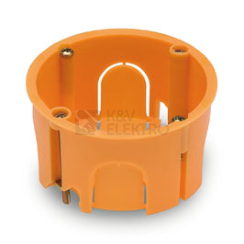 Krabice AcquaBOX 3255 IP30 67x40mm (průměr x výška), přístrojová jednoduchá, montáž do dutých stěn.Elektroinstalační zapuštěné krabice pod omítku a do dutých stěn jsou vyráběny z vysoce odolného termoplastu. Všechny krabice jsou dodávány s vylamovacími elementy, které lze jednoduše odstranit, tím je zaručena rychlá instalace. Rychloupínací montážní kovové držáky u krabic do dutých stěn zajití perfektní uchycení. Celkové krytí je IP30, odolnost proti mechanickým nárazům IK07, barva oranžová, bezhalogenní UV odolný materiál (ABS). Splňuje požadavky norem ČSN EN 60670-1, zkouška žhavou smyčkou 850°C, pro rozsah teplot od -25°C do +85°C.
