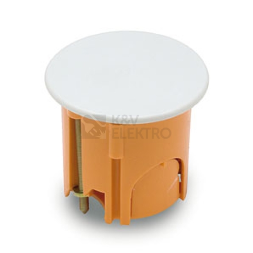 Krabice AcquaBOX 3259 IP30 43x40mm (průměr x výška), pro světelný vývod, plné víko (naklapávací víko), montáž do dutých stěn.Elektroinstalační zapuštěné krabice pod omítku a do dutých stěn jsou vyráběny z vysoce odolného termoplastu. Všechny krabice jsou dodávány s vylamovacími elementy, které lze jednoduše odstranit, tím je zaručena rychlá instalace. Rychloupínací montážní kovové držáky u krabic do dutých stěn zajití perfektní uchycení. Celkové krytí je IP30, odolnost proti mechanickým nárazům IK07, barva oranžová, bílé naklapávací víko, bezhalogenní UV odolný materiál (ABS). Splňuje požadavky norem ČSN EN 60670-1, zkouška žhavou smyčkou 850°C, pro rozsah teplot od -25°C do +85°C.