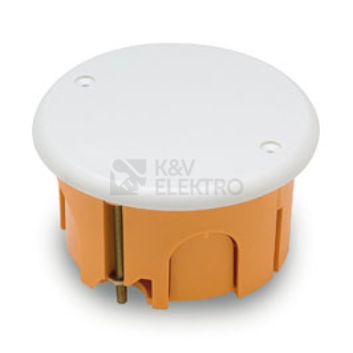 Krabice AcquaBOX 3260 IP30 67x40mm (průměr x výška), odbočná, plné víko na šrouby, montáž do dutých stěn.Elektroinstalační zapuštěné krabice pod omítku a do dutých stěn jsou vyráběny z vysoce odolného termoplastu. Všechny krabice jsou dodávány s vylamovacími elementy, které lze jednoduše odstranit, tím je zaručena rychlá instalace. Rychloupínací montážní kovové držáky u krabic do dutých stěn zajití perfektní uchycení. Celkové krytí je IP30, odolnost proti mechanickým nárazům IK07, barva oranžová, bílé víko na šrouby, bezhalogenní UV odolný materiál (ABS). Splňuje požadavky norem ČSN EN 60670-1, zkouška žhavou smyčkou 850°C, pro rozsah teplot od -25°C do +85°C.