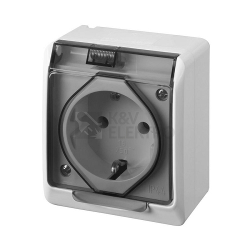 GALATEA 5324-01 IP44 Zásuvka 2P+PE SCHUKO (bílá / kolébka průhledná)Spínače a zásuvky ve vyšším krytí GALATEA IP44 s gumovou průchodkou (pro kabely do průměru 13,5 mm a trubky do 16 mm) jsou speciálně navrženy do prostředí se zvýšeným výskytem vlhkosti a prachu. Výběr je ze tří barevných variant - bílá, bílá a černý ovládací prvek, hnědá. Odolnost proti mechanickým nárazům IK07 předurčuje k venkovnímu použití, v domácnostech, sportovištích, montážních halách, garážích, dílnách apod. Kompaktní pouzdro z odolného plastu zaručuje dlouhou životnost přístrojů. Určeno pro nástěnnou montáž (na omítku/ na povrch), UV odolný materiál. Splňuje požadavky norem ČSN EN 60669-1 (spínače) a IEC 60884-1 (zásuvky), pro montáž na hořlavé podklady doporučujeme použití nehořlavé podložky, pro rozsah teplot od -25°C do +70°C.