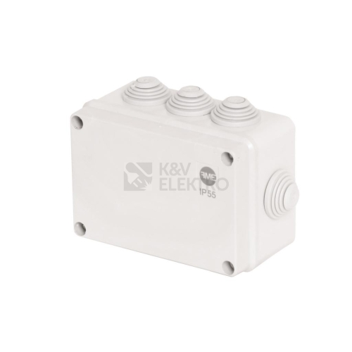Krabice 68032 IP55 130x95x58mm, montáž na povrch, plné víko, stupňovité vývodky (8x), kovové šrouby.Plastová krabice SolidBOX se stupňovitými vývodkami v krytí IP55 a zesílenou konstrukcí, rychlá a jednoduchá montáž - plné šedé víko na šrouby, odolnost proti mechanickým nárazům IK07, pro nástěnnou montáž (na omítku), barva šedá (RAL 7035), samozhášivý, bezhalogenní UV odolný materiál, otvory jsou již předlisovány a osazeny stupňovitými vývodkami, stačí odříznou požadovaný průměr a prostrčit kabel. Splňuje požadavky norem ČSN EN 60670-1, zkouška žhavou smyčkou 650°C (pro montáž na hořlavé podklady doporučujeme použití nehořlavé podložky), pro rozsah teplot od -40°C do +80°C.