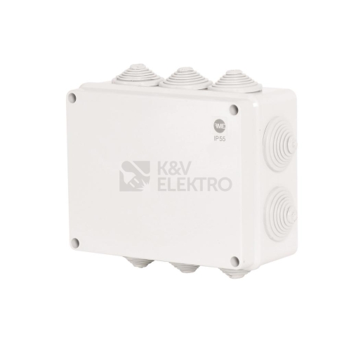 Krabice 68112 IP55 198x163x80mm, montáž na povrch, plné víko, stupňovité vývodky (10x), kovové šrouby.Plastová krabice SolidBOX se stupňovitými vývodkami v krytí IP55 a zesílenou konstrukcí, rychlá a jednoduchá montáž - plné šedé víko na šrouby, odolnost proti mechanickým nárazům IK07, pro nástěnnou montáž (na omítku), barva šedá (RAL 7035), samozhášivý, bezhalogenní UV odolný materiál, otvory jsou již předlisovány a osazeny stupňovitými vývodkami, stačí odříznou požadovaný průměr a prostrčit kabel. Splňuje požadavky norem ČSN EN 60670-1, zkouška žhavou smyčkou 650°C (pro montáž na hořlavé podklady doporučujeme použití nehořlavé podložky), pro rozsah teplot od -40°C do +80°C.