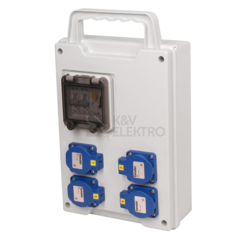 Přenosná zásuvková skříň FAMATEL eb364-EB 400000.1 /4M IP44 jištěná s chráničem 25/2/003, zásuvky 4x230V, přístroje EATON 10kA: 2xPL7-B16/1, PF7-25/2/003 na vstupu, použité pouzdro: 6201-10 (4mod.) - 355x215x85mm, barva: světle šedá.Přenosná zásuvková skříň (rozváděč nízkého napětí) FAMATEL eb364-EB 400000.1 /4M IP44 jištěná s chráničem 25/2/003, zásuvky 4x230V/16A (s ochranným kolíkem dle ČSN), jistící přístroje EATON 10kA: 2xPL7-B16/1, PF7-25/2/003 na vstupu (citlivost na reziduální proud 30mA), použité pouzdro: 6201-10 - celkem k dispozici 4mod. místa, rozměry: 355x215x85mm, plastová, materiál ABS, IK08, zkouška žhavou smyčkou 650°C, bezhalogenová a UV odolná, montáž na povrch, barva: světle šedá, rozsah teplot -25°C +85°C, aplikované normy: IEC 61439-3 (Rozváděče nízkého napětí - Část 3: Rozvodnice určené k provozování laiky (DBO), balení: 1ks (fólie), zásuvky na 230V/16A s ochranným kolíkem dle ČSN, polykarbonátové okénko, jistící prvky EATON, PE svorkovice součástí (6x16mm2), N svorkovice součástí (6x16mm2), hladké stěny (bez prolisů) pro vyvrtání vstupního otvoru a následné osazení příslušnou vývodkou, max. připojitelný vstupní kabel = 5x16 (Cu), dodáno s průvodní dokumentací: štítkem rozváděče, návodem pro obsluhu a montáž, krycím listem (charakteristiky rozhraní), protokolem o kusové zkoušce, ES prohlášením o shodě, schématem zapojení a zkouškou oteplení pro rozváděče nízkého napětí.