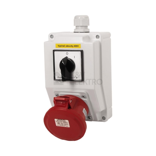 Zásuvková krabice FAMATEL sb005 se spínačem 0-1, IP44, 1x400V/32A/5, pouzdro: rozměr 195x120x105mm, barva: světle šedá, IK08, rozměrová a tvarová stálost -25°C +85°C, zkouška žhavou smyčkou 650°C, stupeň samozhášivosti HB (UL94), materiál ABS, aplikované normy EN 60670-22.Zásuvková krabice FAMATEL sb005 se spínačem 0-1, IP44, 1x400V/32A/5 bez jištění 400 V zásuvky (nutno jistit a chránit přívodním kabelem), rozměry použitého pouzdra: 195x120x105mm, plastová, materiál ABS, IK08, zkouška žhavou smyčkou 650°C, bezhalogenová a UV odolná, montáž na povrch, barva: světle šedá, rozsah teplot -25°C +85°C, aplikované normy: EN 60670-22, balení: 1ks (fólie), hladké stěny s horním prolisem pro vývodku M25, max. připojitelný vstupní kabel = 5x6 (Cu), dodáno s průvodní dokumentací.