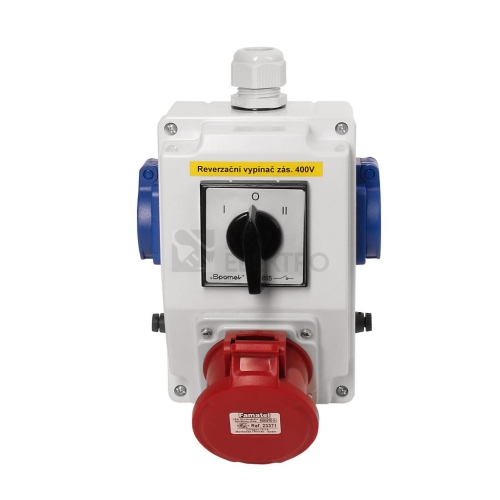 Zásuvková krabice FAMATEL sb320 se spínačem I-0-II, IP44 2x230V/16A, 1x400V/16A/5, pojistka 2x10A, pouzdro: rozměr 195x120x105mm, barva: světle šedá, IK08, rozměrová a tvarová stálost -25°C +85°C, zkouška žhavou smyčkou 650°C, stupeň samozhášivosti HB (UL94), materiál ABS, IEC 61439-3.Zásuvková krabice FAMATEL sb320 se spínačem I-0-II, IP44 2x230V/16A, 1x400V/16A/5, bez jištění 400 V zásuvky (nutno jistit a chránit přívodním kabelem), zásuvky 2x230V/16A (s ochranným kolíkem dle ČSN) jsou odjištěny pojistkami 10 A / 230 V (5x20 mm), rozměry použitého pouzdra: 195x120x105mm, plastová, materiál ABS, IK08, zkouška žhavou smyčkou 650°C, bezhalogenová a UV odolná, montáž na povrch, barva: světle šedá, rozsah teplot -25°C +85°C, aplikované normy: IEC 61439-3, balení: 1ks (fólie), hladké stěny s horním prolisem pro vývodku M25, max. připojitelný vstupní kabel = 5x6 (Cu), dodáno s průvodní dokumentací.