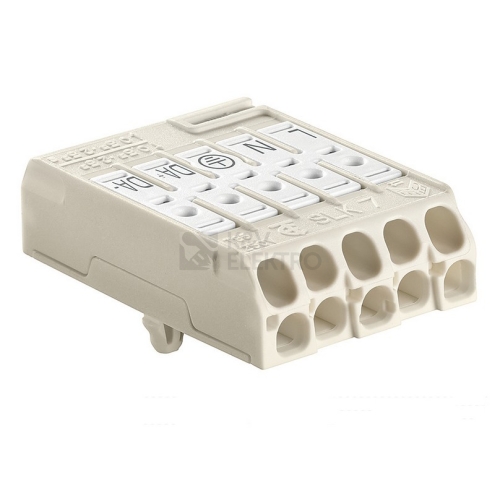 5-pólová svorkovnice pro průmyslová svítidla - SLK 7/5 E-PIEC (L-N-E-DA+-DA-), bezšroubové připojení vodičů, z PC (polykarbonátu), super plochá - výška 11mm, bílá /88168390