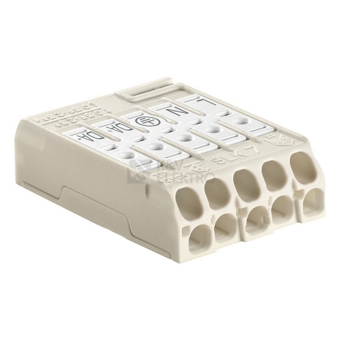 5-pólová svorkovnice pro průmyslová svítidla - SLK 7/5 OF TAPE (L-N-E-DA+-DA-), bezšroubové připojení vodičů, z PC (polykarbonátu), super plochá - výška 11mm, bez fixačního pinu, bílá /88168390