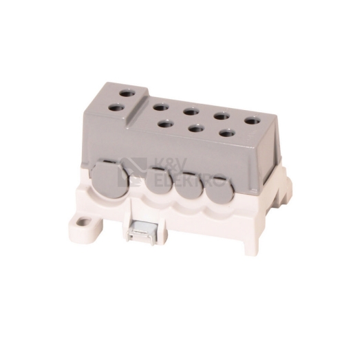 Blok pro rozdělení fází PVBS 250-7 Bloky pro rozdělení fází (rozváděčové bloky) PVBS slouží pro rozdělení přívodního kabelu/vodiče/sběrnice o velkém průřezu na několik menších průřezů. Přívod může být jak kulatý, tak plochý typ vodiče. Bloky značně šetří místo v rozváděčích oproti klasickým třmenovým svorkám. Díky plastovému krytu je zajištěna ochrana před nebezpečným dotykem živých částí. Jsou určeny k instalaci na nosnou lištu 35 mm (s možností dodatečného upevnění šroubem). Vyráběny jsou až do proudové zatížitelnosti 250 A. Povrchově upravená svorka je vhodná jak pro hliníkové, tak pro měděné vodiče. Hlavní přednosti: montáž na nosnou lištu úspora místa uvnitř rozváděče dostatek připojovacích míst jmenovité napětí 690 V AC (Ui = 1000 V) Technické parametry: 1pólový pro AL/CU vodiče jmenovitý proud 250A jmenovité napětí 690V barva šedá montáž na DIN lištu / PANEL krytí IP20 vstup 1x95mm2 výstup 7x50mm2 rozměr 72x45x47mm