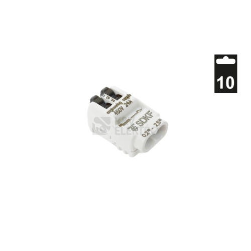 Svorka krabicová páčková SDKF 2/10 - univerzální (pevný i laněný vodič), bezšroubová, 2x0,2-2,5mm2, bílá, balení v praktickém sáčku po 10ks