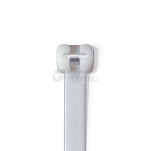 Vázací (stahovací) pásky s kovovým zubem v rozměru 100x2,5mm, v bílé barvě, PA 6.6, (balení=100ks), MET.2.2102, materiál polyamid (6.6), UV odolné, -40°C +85°C, stáhne svazek o průměru 2 až 24 mm a únosnost až 18 kg.