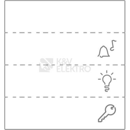 Sada symbolů Mureva Styl, složená ze 4 různých štítků, které se vkládají na kryty s označovacím polem. Dostupné štítky jsou: zvonek, klíč, lampa a prázdná.