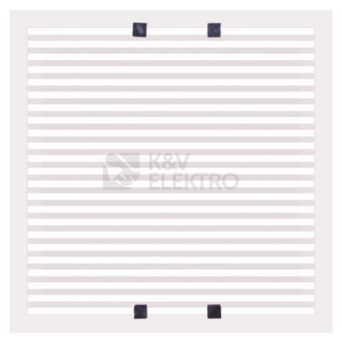 Stropní a nástěnné svítidlo Kubus 400 Pruhy se skládá z bílé kovovové základny a dvou difuzorů. Lze do něj dát 4 zdroje E27.