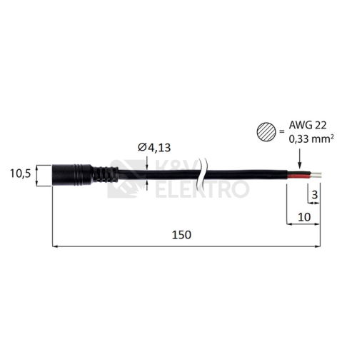 Napájecí konektor - zásuvka, s dvouvodičovým kabelem, délka cca 185 mm. Tento konektor využijete např. s plastovým zdrojem zakončeným konektorem - vidlicí k napájení ovladačů, stmívačů apod., případně lze takový zdroj jednoduše připojit přímo k LED pásku (pájením, svorkami apod).