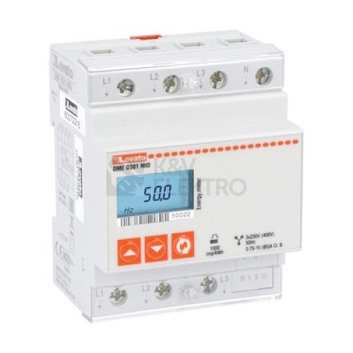 Elektroměr, funkce multimetru, třífázový, přímé měření 80A, certifikovaný MID, vestavěný RS485 port