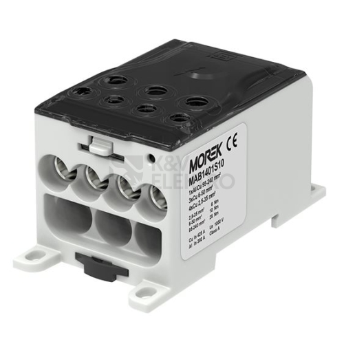 Distribuční bloky OJL jsou určeny k rozbočení vodičů jednoho většího průřezu do několika vodičů menšího průřezu. Vstupní vodič Cu, Al: 1x 95-240 mm2 Výstupní vodič Cu: 4x 2,5-35 mm2 3x 6-50 mm2 Jmenovité napětí: 1000 V AC/DC Jmenovitý proud: 425 A (Cu) / 380 A (Al) Šířka/výška/délka: 51,4 / 51,2 / 100,3 mm Certifikováno dle norem: EN 61238-1 a EN 60947-7-1