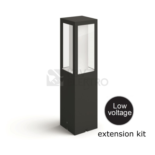Venkovní sloupek Philips Hue Impress extension kit o výšce 40 cm je určen pro rozšíření osvětlení v zahradě nebo na terase ke svítidlu s nízkonapěťovým adaptérem. Balení obsahuje napichovací trn do země o délce 17 cm, konektor pro rošíření a 5 m černý prodlužovací kabel. (Není dodáváno se síťovým adaptérem.) I tento sloupek se tak velmi snadno instaluje kdekoli potřebujete. Pro jeho výrobu byl použit kvalitní tlakově litý hliník v černé barvě v kombinaci s čirým sklem. Svit vychází z integrovaného úsporného vysoce výkonného LED zdroje Hue White and Color Ambiance s až 16 milióny odstíny barev v nastavitelných intenzitách. Teplota bílého světla je volitelná ve 4 schématech od 2200K (žárovkové teplé bílé světlo pro odpočinek a relaxaci), přes 2700K (teplé bílé světlo vhodné na čtení), po 4000K (jasné denní světlo simulující polední svit pro práci a soustředění), až po 6500K (studené bílé světlo navozující energii). Anebo je možné nastavovat barevné světlo podle nálady. Vyžaduje připojení přes můstek Hue Bridge (není součástí dodávky) pro možnost ovládat svítidlo odkudkoli přes mobilní aplikace. Životnost zdroje je extrémně dlouhá až 25.000 hodin. Krytí IP44 značí voděodolnost a vhodnost pro použití ve vlhkém venkovním prostředí. Podívejte se na všechny výrobky Philips HUE v našem sortimentu.