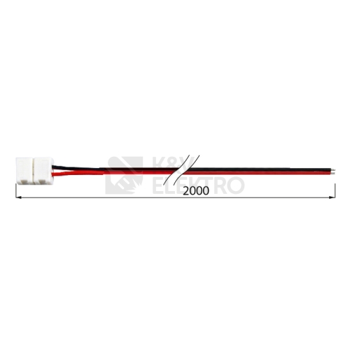 Připojovací konektor jednobarevných 10mm LED pásků s max. 60LED/m. Slouží k jednoduchému a rychlému připojení LED pásků k řízení, délka přívodu cca 2m. Do kontaktů v konektoru se vsune LED pásek a konektor se zaklapne. Konektor je určen pro max. proud 2A, pro větší proudy doporučujeme vodiče k LED pásku připájet. Rozměry cca 2016x14x4,6mm. Maximální proud 2A.