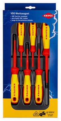 Nářadí v plastovém hlubokotažném obalu s průhledným víkem. Atraktivní prodejní balení s děrováním pro samoobslužný prodej. Rozměry vnější (Š x V x H): 170 x 370 x 40 mm. Nářadí s atestem VDE podle DIN EN/IEC 60900 1000 V.