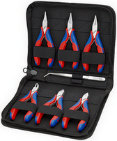 7-dílný, osazený 6 kleštěmi pro elektroniku a jednou precizní pinzetou. Pouzdro z odolného plastu, se zipem, kleště přidržovány elastickým pásem.