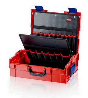 Robustní box z plastu ABS odolného proti úderům a nárazům. Chráněné proti stříkající vodě. Více boxů se může vzájemně spolehlivě spojit. Flexibilní vnitřní rozdělení. Držadlo může být úsporně zapuštěno do prohloubení ve víku. Ergonomicky tvarované rukojeti a dodatečné boční ovládací skořepiny pro flexibilní a komfortní manipulaci. Pomocí dvoudílné karty nástroje z odolné polyesterové tkaniny. Karty nástrojů jsou vzájemně spojeny suchým zipem. část víka s 10 kapsami a 10 elastickými oky. Spodní díl nahoře se 7 kapsami a klopou k zachycení karty nástrojů- slouží také pro zvedání nebo instalaci L-BOXX®. Spodní díl dole se 7 kapsami a 7 elastickými oky. Zatížitelnost do 25 kg.