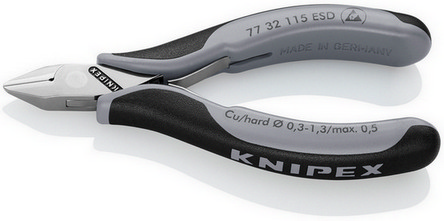 Pro přesné montážní práce, např. v oblasti elektroniky a jemné mechaniky. Rukojeti elektricky svodivé - disipativní. Stabilní průvlečný kloub bez vůle. Dvojitá pružina s malým třením pro měkké a stejnoměrné otevírání. Vysoce lesklý povrch ve spojení s jemným olejovým filmem poskytuje dobrou ochranu proti korozi - žádné poruchy ve spínacím obvodu způsobené olupováním chromovaných částí. Břity doplňkově induktivně tvrzené. Rukojeti s dvoubarevnými vícesložkovými návleky černé/šedé. Speciální nástrojová ocel ve zvláštní jakosti, kovaná,kalené v oleji v několika stupních. špičaté čelisti, s malou fazetou. Tvrdost břitů asi 60 HRC.