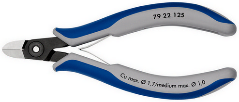 Precizní kleště pro nejjemnější stříhací práce např. v elektronice a jemné mechanice. Velmi přesně broušené, ostré břity s velmi malými fazetami na přesné řezy u citlivých elektronických součástek, rovněž bez fazet pro přesné odštípnutí. Břity doplňkově induktivně tvrzené, tvrdost břitů asi 64 HRC kováno. Hmotnost cca o 20 % nižší než u konvenčních kleští na elektroniku. šroubový kloub s precizně vyrobenými kloubními plochami pro rovnoměrný pohyb s malým třením v celém rozsahu rozevření.. Dvojitá pružina s malým odporem pro snadné a rovnoměrné rozevření.. Ergonomicky optimalizované vícesložkové návleky rukojetí. Chromovaná ocel na kuličková ložiska, kalená v oleji v několika stupních. Kulatá hlava.