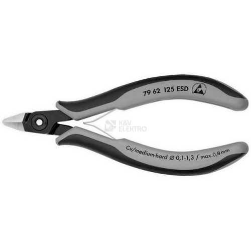 Rukojeti elektricky svodivé - disipativní. Precizní kleště pro nejjemnější stříhací práce např. v elektronice a jemné mechanice. Velmi přesně broušené, ostré břity s velmi malými fazetami na přesné řezy u citlivých elektronických součástek, rovněž bez fazet pro přesné odštípnutí. Břity doplňkově induktivně tvrzené, tvrdost břitů asi 64 HRC kováno. Hmotnost cca o 20 % nižší než u konvenčních kleští na elektroniku. šroubový kloub s precizně vyrobenými kloubními plochami pro rovnoměrný pohyb s malým třením v celém rozsahu rozevření.. Dvojitá pružina s malým odporem pro snadné a rovnoměrné rozevření.. Ergonomicky optimalizované vícesložkové návleky rukojetí. Chromovaná ocel na kuličková ložiska, kalená v oleji v několika stupních. špičatá hlava. S drátěnou svěrkou - žádné nekontrolované odskakování odstřižků drátů.