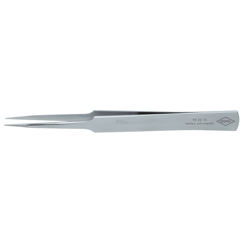 Pro nejjemnější montážní práce. Extra jemné hroty. Plochy čelistí hladké. Nerezová antimagnetická ocel. Matováno. Americký tvar, stabilní. Rovný tvar. Nerezová antimagnetická ocel odolná vůči kyselinám.