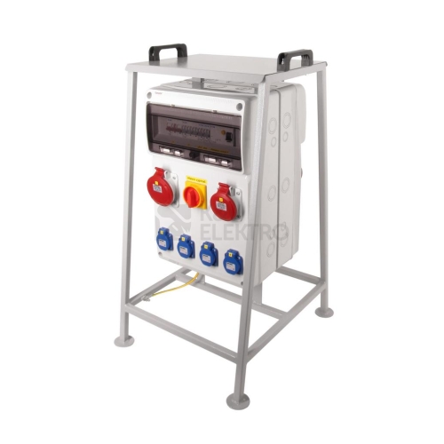Staveništní rozváděč FAMATEL v86061 - ZSFV80400000.1 /3952 Zás. skříň IP44 jištěná s chráničem 63/4/003 na kov. stojanu a s hl. vypínačem 63A, zásuvky 8x230V, 4x16/5, přístroje EATON 10kA: 4xPL7-B16/1, 2xPL7-B16/3, 1xPF7-63/4/003 na vstupu, použitá pouzdra: 3952 - 500x330x150mm, použitý stojan: 7352: 845x465x540mm, barva (komaxit): světle šedá.Staveništní rozváděč (podružný rozváděč nízkého napětí) v86061 - ZSFV80400000.1 /3952 Zás. skříň IP44 jištěná chráničem 63/4/003 na kov. stojanu a s hl. vypínačem 63A, zásuvky 8x230V/16A (s ochranným kolíkem dle ČSN), 4x400V/16A/5pól, jistící přístroje EATON 10kA: 4xPL7-B16/1, 2xPL7-B16/3, 1xPF7-63/4/003 na vstupu (citlivost na reziduální proud 30mA, typ AC), připojovací svorkovnice do max. 5x25 mm2, použitá pouzdra: 3952 - celkem k dispozici 32mod. míst, rozměry pouzdra: 500x330x150mm, plastový materiál (ABS), IK08, zkouška žhavou smyčkou 650°C, bezhalogenová a UV odolná, způsob instalace: mobilní - kovový samonosný stojan, barva: světle šedá, rozsah teplot -25°C +85°C, aplikované normy: IEC 61439-4 (Rozváděče nízkého napětí - Část 4: Zvláštní požadavky pro staveništní rozváděče (ACS), PE svorkovnice součástí (2ks 2x16mm2+4x10mm2), N svorkovnice součástí (2ks 2x16mm2+4x10mm2), stěny s předlisovanými vstupy pro vyvrtání vstupního otvoru a následné osazení příslušnou vývodkou (M25, M32, M40), dodáno s průvodní dokumentací: štítkem rozváděče, návodem pro obsluhu a montáž, krycím listem (charakteristiky rozhraní), protokolem o kusové zkoušce, EU prohlášením o shodě, schématem zapojení a zkouškou oteplení pro rozváděče nízkého napětí.