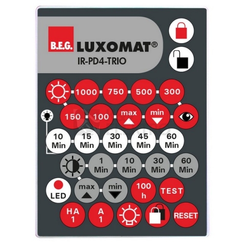 Infračervené dálkové ovládání pro pohodlné nastavení nebo změnu parametrů. Kompletní s nástěnným držákem. Jednoduché naprogramování přítomnostního detektoru PD4-M-TRIO-DIM. Rozměry : 80 x 60 x 8 mm(in translation) zatažený/tmavý max. 5 až 6 m sluneční svit max. 2 až 3 mAccu: lithium 3,0 VVýrobce: B.E.G. Brück Electronic GmbHBarva: -Výr. číslo: 92097Typ: IR-PD4-TRIO