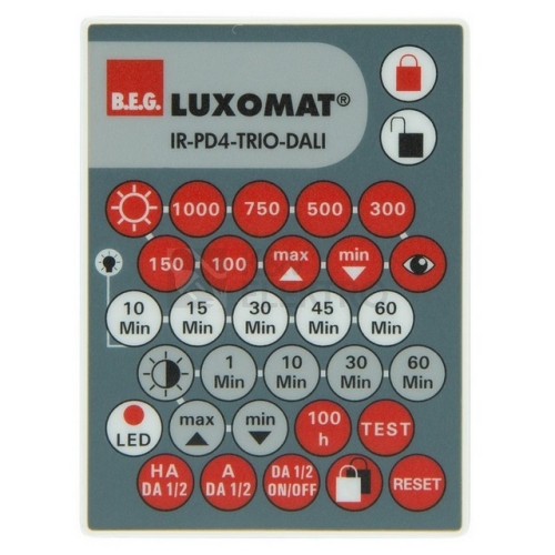 Infračervené dálkové ovládání pro pohodlné nastavení nebo změnu parametrů. Kompletní s nástěnným držákem. Jednoduché naprogramování přítomnostních detektorů PD4-M-TRIO-DALIRozměry : 80 x 60 x 8 mm(in translation) zatažený/tmavý max. 5 až 6 m sluneční svit max. 2 až 3 mAccu: lithium 3,0 VVýrobce: B.E.G. Brück Electronic GmbHBarva: -Výr. číslo: 92104Typ: IR-PD4-TRIO-DALI