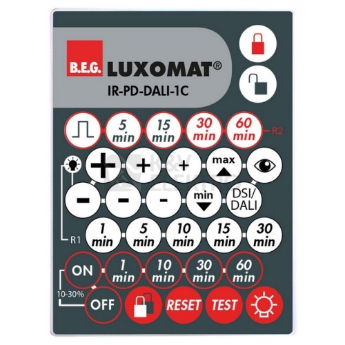 Infračervené dálkové ovládání pro pohodlné nastavení nebo změnu parametrů. Kompletní s nástěnným držákem. Jednoduché naprogramování přítomnostního detektoru PD2-M-DALI/DSI, PD4-MDALI/DSI /-K, PD9-M-DALI/DSI /-GH a PD4-M-DUO-DALI.baterie: 3,0 V lithium CR2032 (včetně)Rozměry : 80 x 60 x 8 mm(in translation) zatažený/tmavý max. 5 až 6 m sluneční svit max. 2 až 3 mVýrobce: B.E.G. Brück Electronic GmbHBarva: -Výr. číslo: 92116Typ: IR-PD-DALI-1C