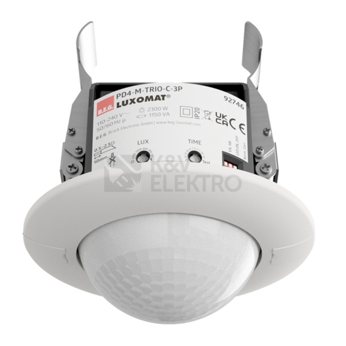 Detektor přítomnosti s jedním kanálem se dvěma simultánně pracovními reléovými výstupy, které umožňují rozdělení osvětlení do dvou skupin.Spínání kanálů v případě selhání provozního napětí, osvětlení je udržováno, pokud jsou obě fáze napájeny. Přístroj vyžaduje provozní napětí. Třetí fázi lze použít k tomuto účelu.Speciálně pro chodbyProvedení detektor Master Možné rozšíření detekčního rozsahu pomocí přístrojů detektor slaveMožné manuální zapínání tlačítkyDalší funkce jsou nastavitelné dálkovým ovládánímZnačky pro nastavení detektoru. Typické aplikace: sítě nouzového napájení, např. v nemocnicích nebo datových centrech. Napětí : 110 – 240 V AC 50 / 60 HzRozměry : FC= Ø 117 x 100 mmSpotřeba elektrické energie : ca. 0,5 WDetekčním rozsahem : vertikální 360°Dosah : max. 40 m x 5 m křížem max. 20 m x 3 m přímoVelikost snímaného prostoru pro nepřímý pohyb, v případě montáže v doporučené výšce : 250 m² / 2,5 m montážní výška(in translation): 2,4 m / 2,6 m / 2,5 mStupeň krytí : FC= IP20 / třída II SM= IP20 / třída IIOkolní teplota : -25 °C až +50 °CBydlení : obal UV a nárazuvzdorný polykarbonát kanál 1 (ovládání osvětlení - beznapěťový kontakt)Spínací kapacita : 2300 W, cos φ = 1 1150 VA, cos φ = 0,5 300 W LEDTyp kontaktu : 2x µ kontakt, bezpotenciálový kontakt NC s náběhovým wolframovým kontaktemČas dobehu : 15 s – 30 min, impulsPrahová hodnota sepnuti : 10 – 2000 lux měření smíšeného světlaVýrobce: B.E.G. Brück Electronic GmbHBarva: bílá mat, podobný RAL9010Výr. číslo: 92746Typ: PD4-M-TRIO-C-3P-FC