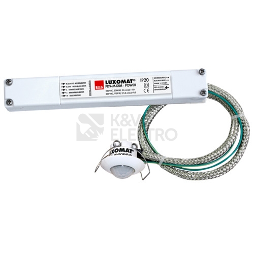 Minidetektor přítomnosti pro regulaci osvětlení v závislosti na denním světleRozhraní 1– 10 V pro nastavení stmívatelných elektronických předřadníkůJeden kanál pro zlumení a přepínání světla. Možné manuální zapínání a stmívání tlačítkemFunkce orientačníProvedení detektor Master Možné rozšíření detekčního rozsahu pomocí přístrojů detektor slaveJednoduchá obsluha pomocí potřebného dálkového ovládáníRelé s volfrámovým předběžným kontaktem, optimalizované pro zatížení LED. Výkonová část jde instalovat skrz otvor pro detektor (Ø 34 mm)Vyloučení ztrát v pohotovostním režimu světelného systému v souladu s EnEV DIN V 18599-4Pružinové svorky pro jednoduchou a rychlou montáž do podhledů a svítidelVčetně krycího kroužku o Ø 45 mm a krycích lamelTypická aplikace: Monitorování průmyslových hal a schodišť. Napětí : 110 – 240 V AC 50 / 60 HzRozměry : hlava senzoru: Ø 45 x 28 mm, zdroj napájení 165 x 24 x 24 mmSpotřeba elektrické energie : ca. 0,5 WDetekčním rozsahem : vertikální 360°Dosah : max. Ø 10 m křížem max. Ø 6 m přímo max. Ø 4 m sedícíVelikost snímaného prostoru pro nepřímý pohyb, v případě montáže v doporučené výšce : 79 m² / 2,5 m montážní výška(in translation): 2 m / 5 m / 2,5 mStupeň krytí : IP20 / třída IIOkolní teplota : -25 °C až +50 °CBydlení : obal UV a nárazuvzdorný polykarbonátDélka kabelu : 45 cm, stíněný kabel kanál 1 (ovládání osvětlení)Spínací kapacita : 2300 W, cos φ = 1 1150 VA, cos φ = 0,5 300 W LED max. náběhový proud Ip (20 ms) = 165 A max. náběhový proud Ip (200 µs) = 800 ATyp kontaktu : 1x µ kontakt, bez kontaktu s náběhovým wolframovým kontaktemVýkon DIM : 1-10 V DC, až do 50 předřadníkyČas dobehu : 1 min – 30 minNastavená hodnota jasu : 10 – 2000 lux měření smíšeného světlaVýrobce: B.E.G. Brück Electronic GmbHBarva: bílá mat, podobný RAL9010Výr. číslo: 92910Typ: PD9-M-DIM-FC